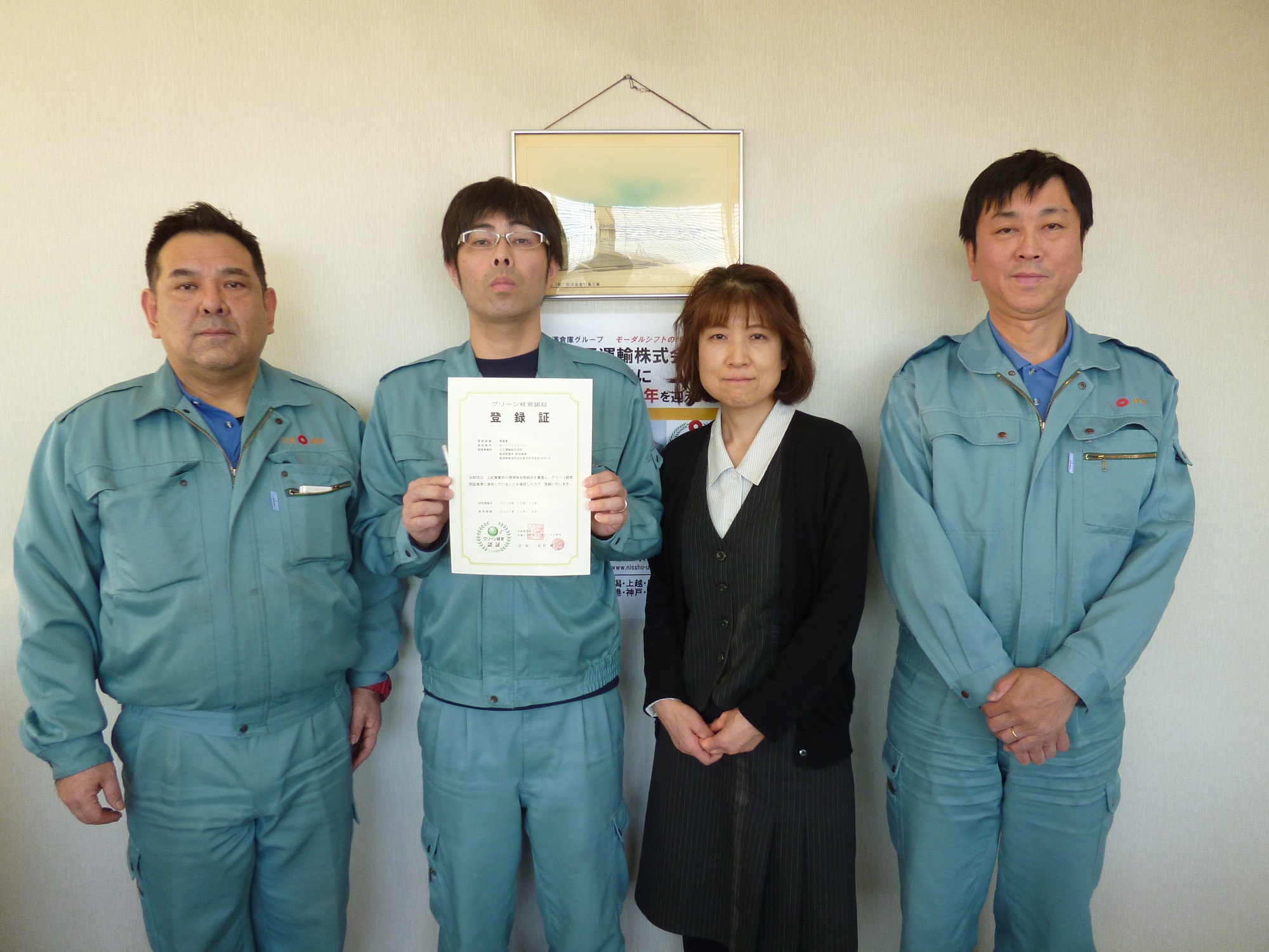 新潟営業所の倉庫部門は、このたび「グリーン経営認証」を取得いたしました。